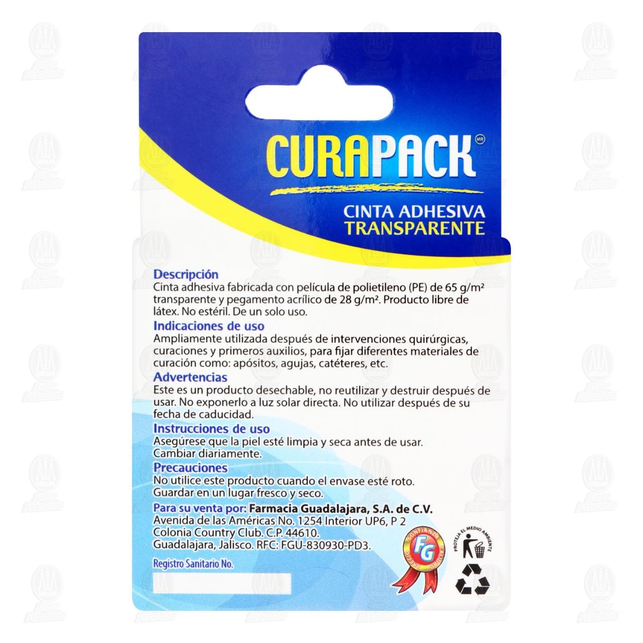 Cinta Adhesiva Curapack transparente con alta tolerancia cutánea y fácil de cortar. Contiene 1 pieza de 2.5 centímetros x 5 metros.