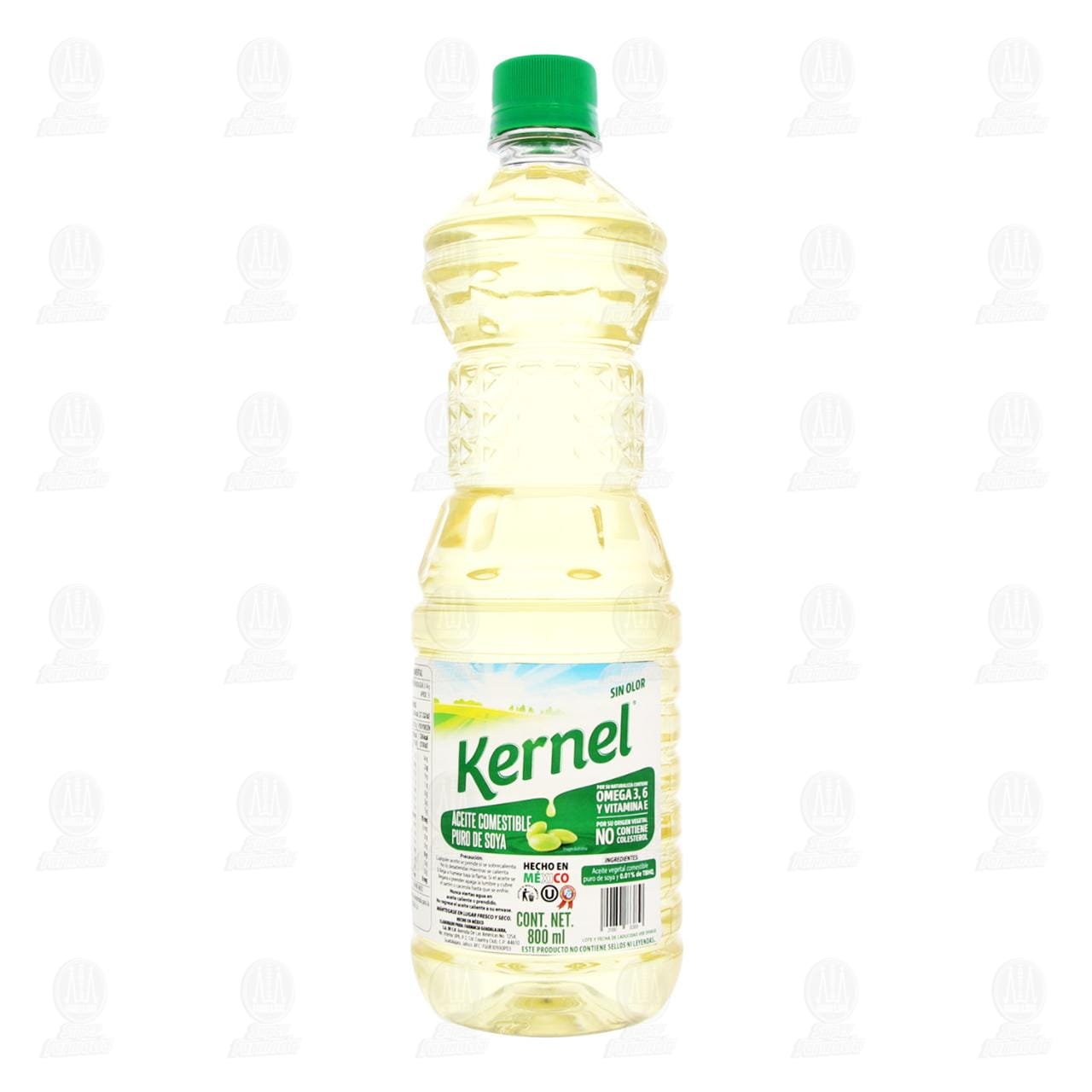Aceite Puro de Soya Comestible Kernel. Contiene 800 mililitros.