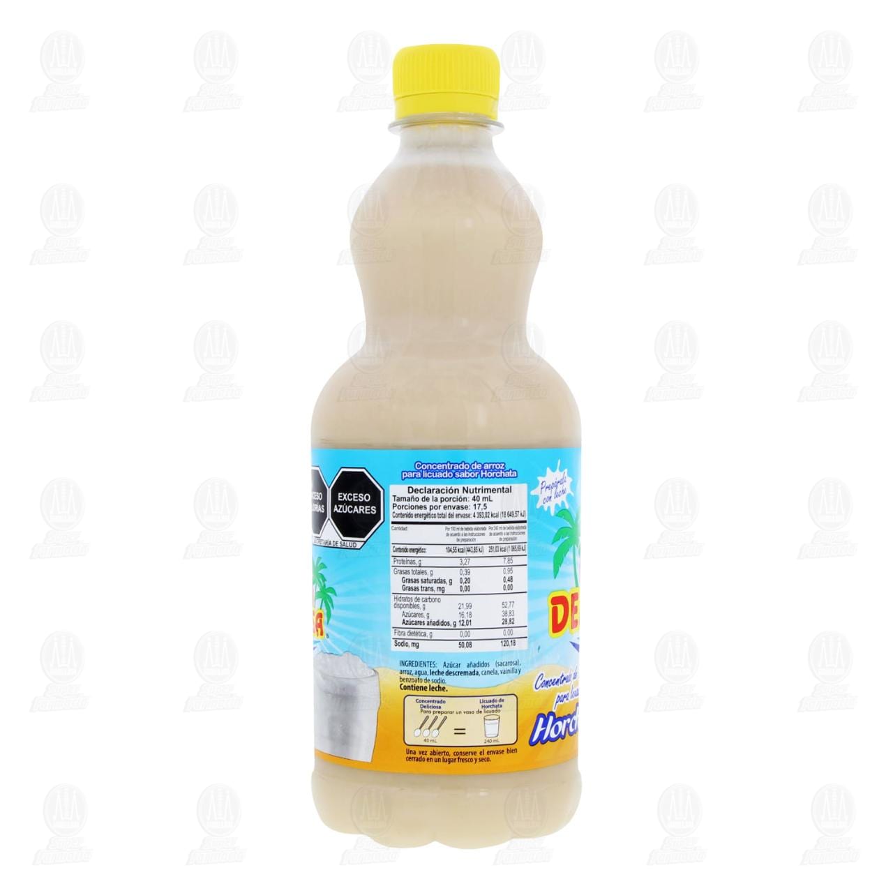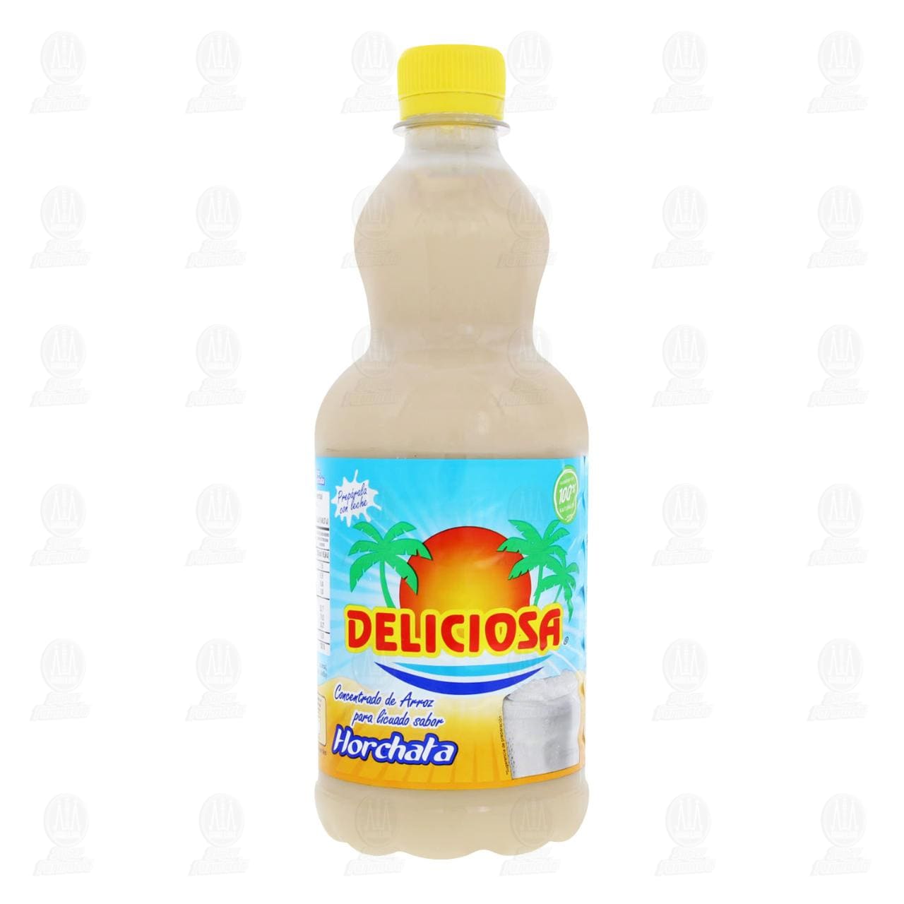 Concentrado líquido de arroz Deliciosa, para licuado sabor horchata. Envase con 700 mililitros.