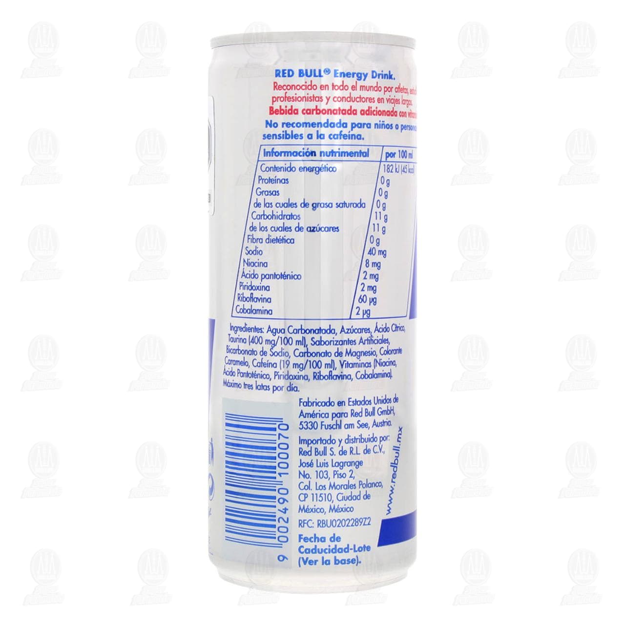Bebida energética carbonatada Red Bull Energy Drink adicionada con vitaminas. Lata con 250 mililitros.