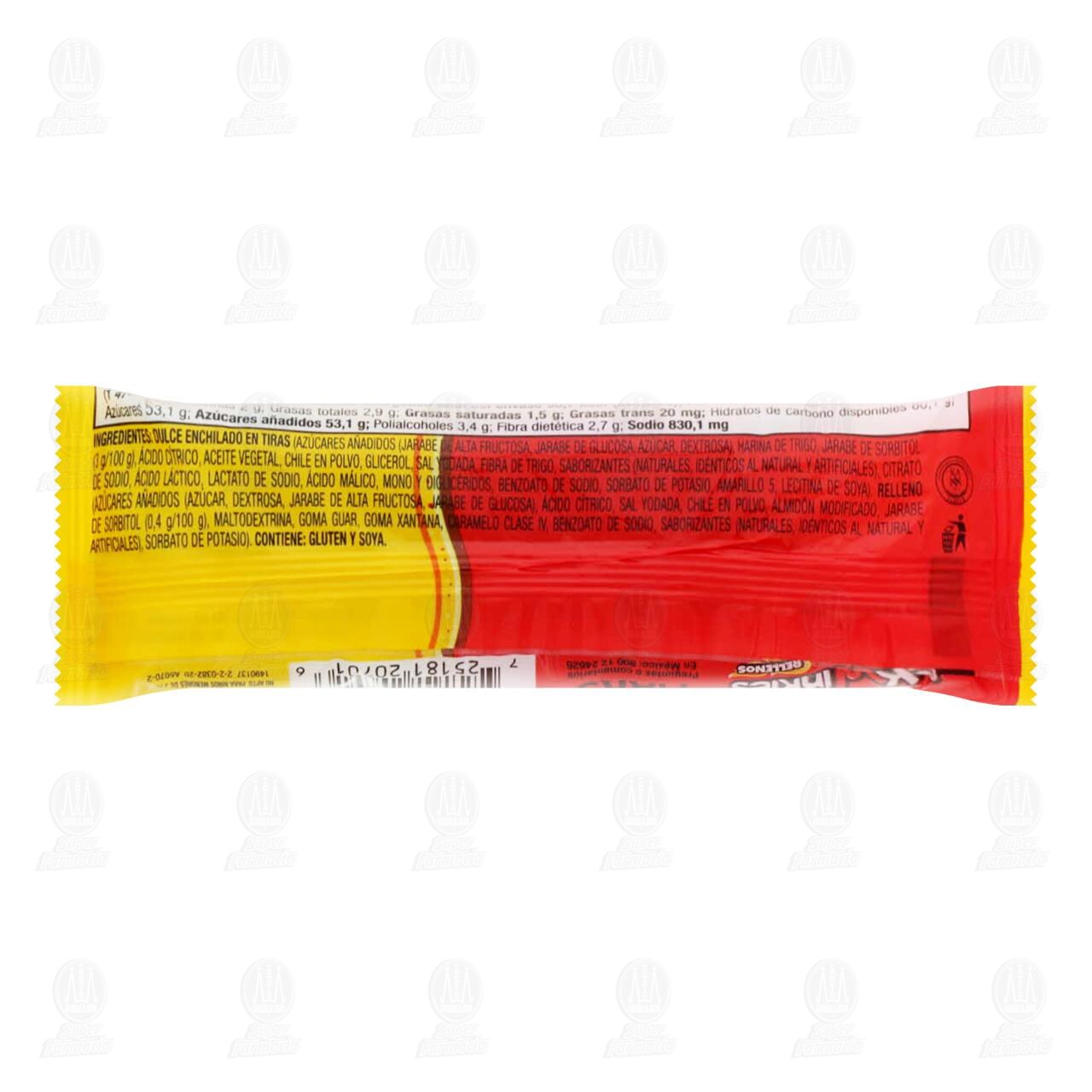 Contiene gluten y soya. No apto para niños menores de 3 años. Conservar en un lugar fresco y seco. Exceso de calorías. Exceso de azúcares. Exceso de sodio. Contiene edulcorantes, no recomendable en niños.