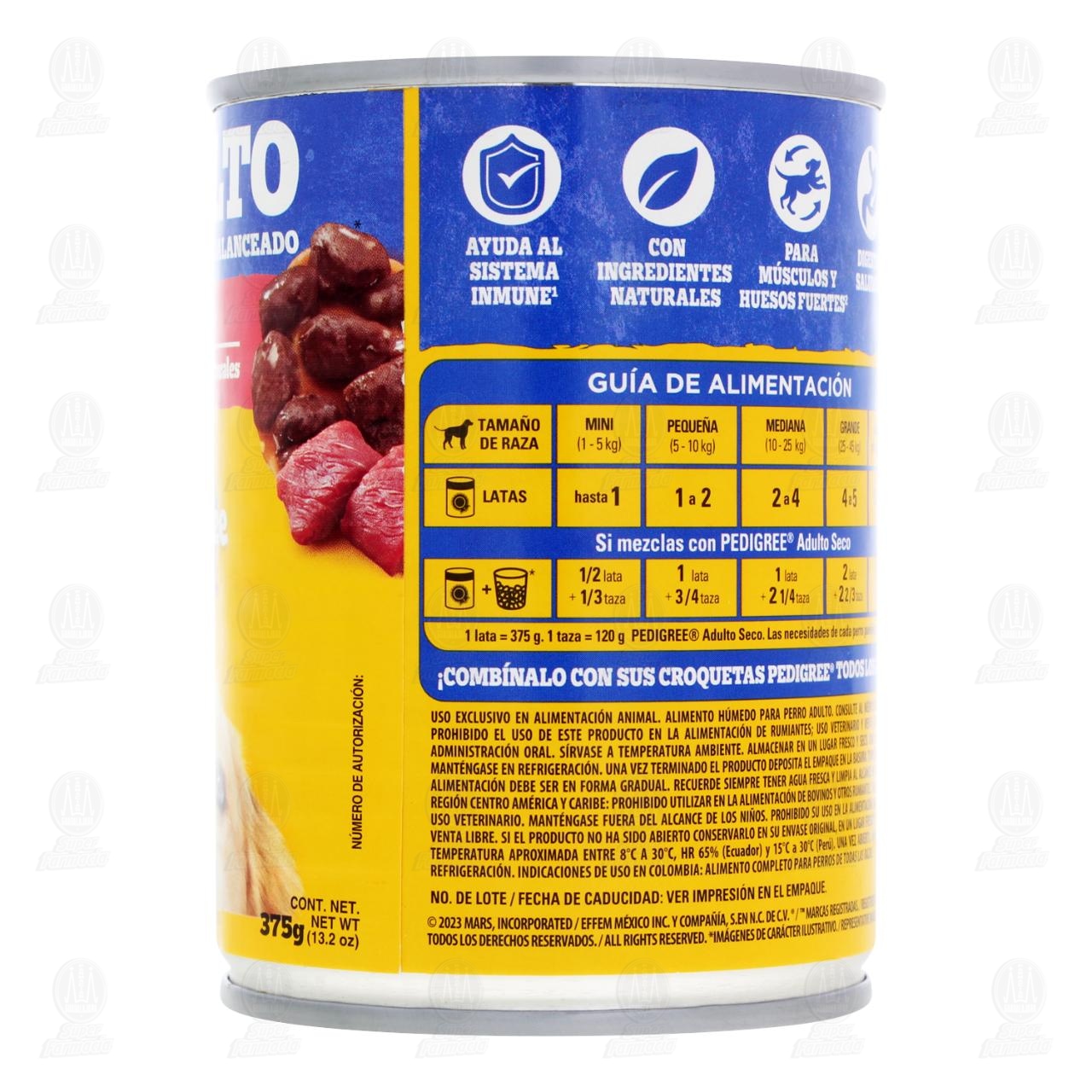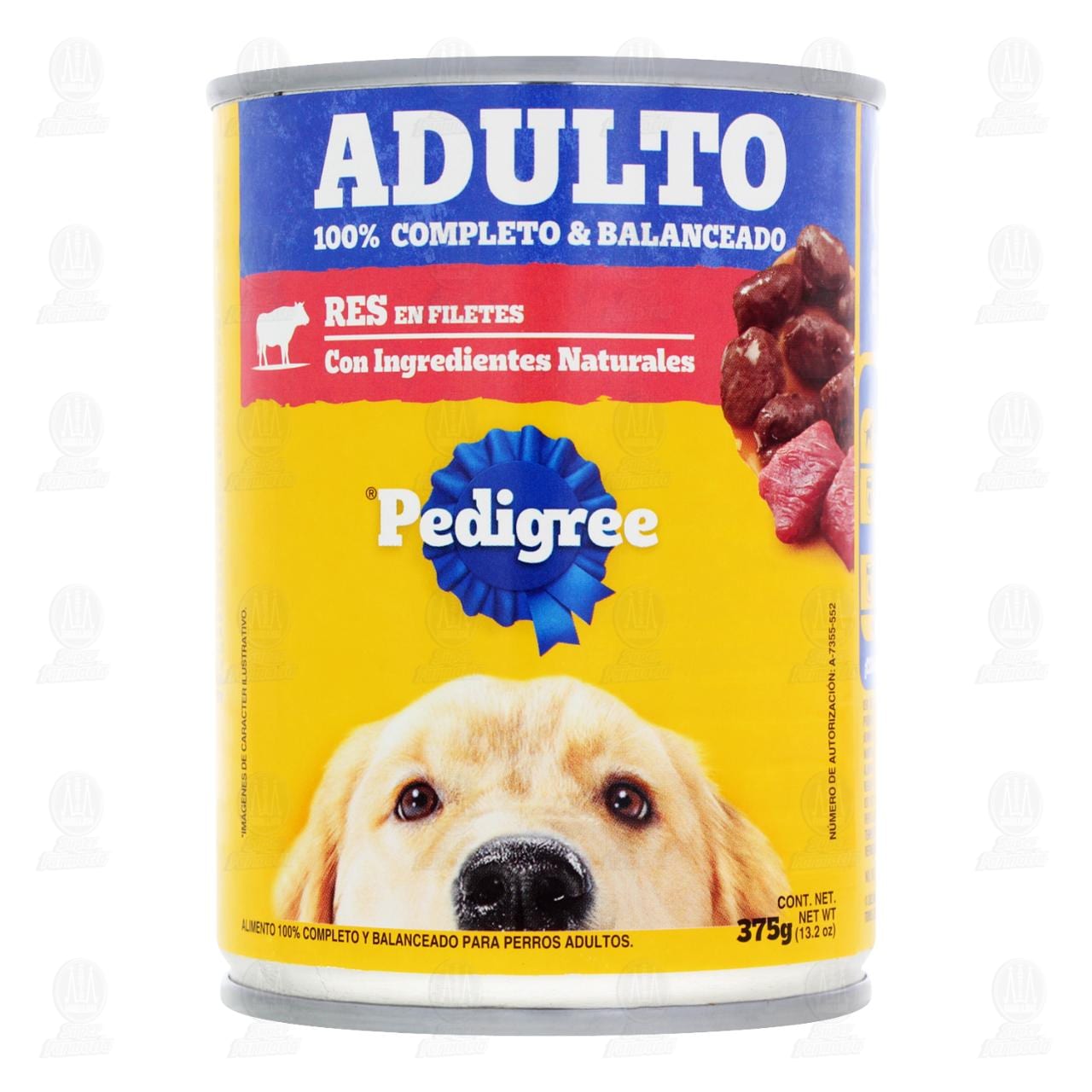 Alimento Pedigree Res en Filetes para perros adultos 100% completo y balanceado con ingredientes naturales que ayudan al sistema inmune. Lata con 375 gramos.