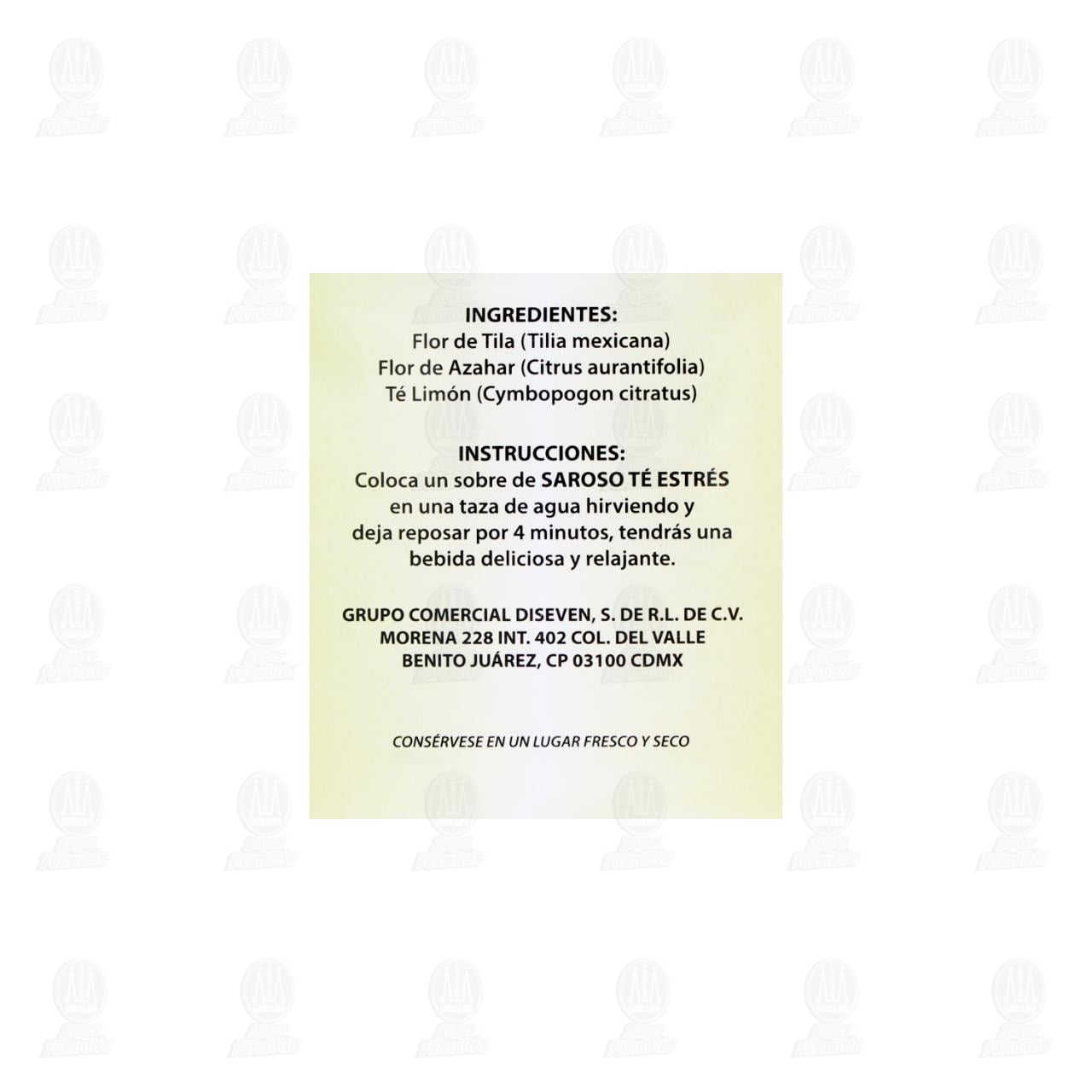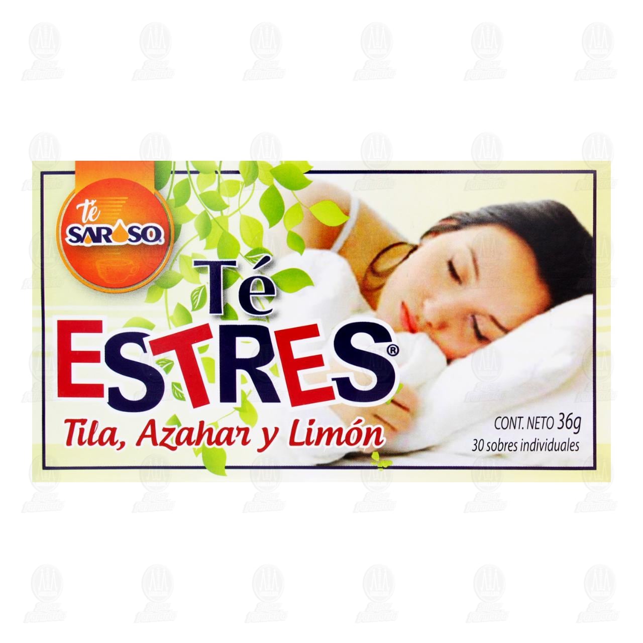 Té Estrés Saroso de tila, azahar y limón 100% natural. Caja de 36 gramos con 30 sobres.
