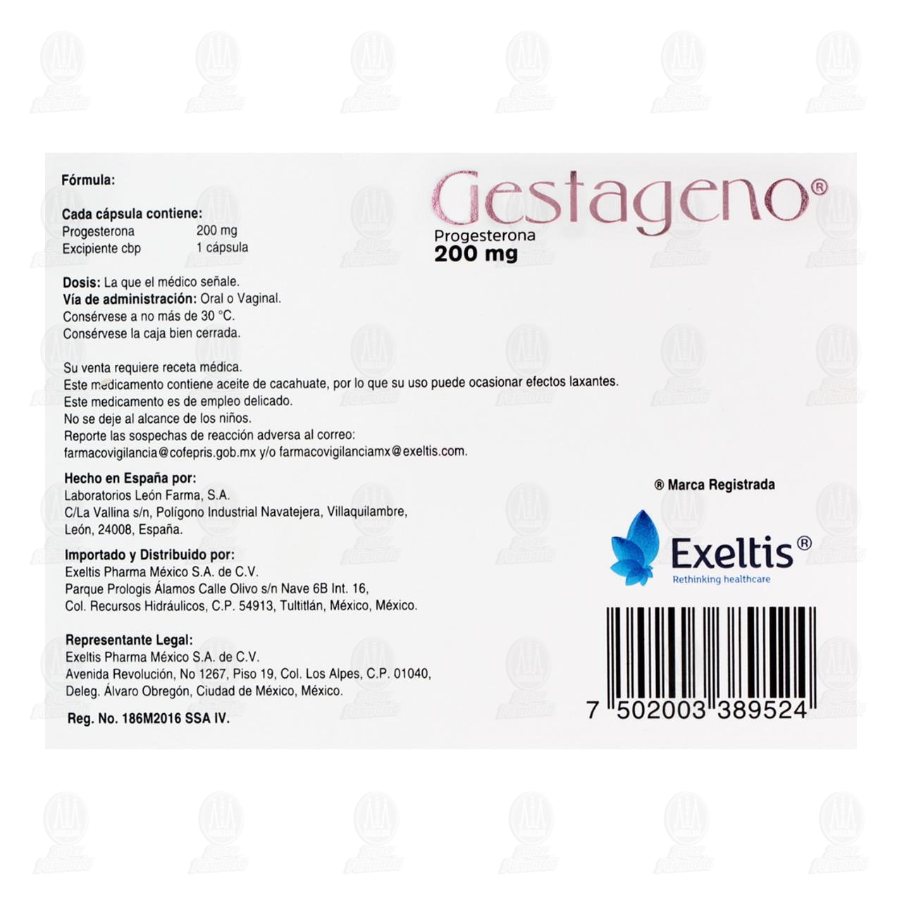 Gestageno 200 mg, 15 Cápsulas.